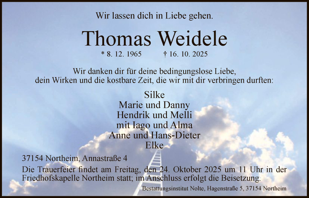 Hier finden Sie alle Traueranzeigen aus der Zeitung, die bisher für Thomas Weidele erschienen sind. Weitere Traueranzeigen, die in der Zeitung erscheinen, werden hier ebenfalls aufgelistet