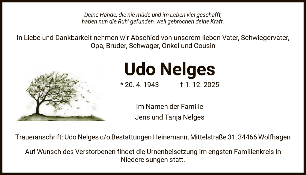 Hier finden Sie alle Traueranzeigen aus der Zeitung, die bisher für Udo Nelges erschienen sind. Weitere Traueranzeigen, die in der Zeitung erscheinen, werden hier ebenfalls aufgelistet