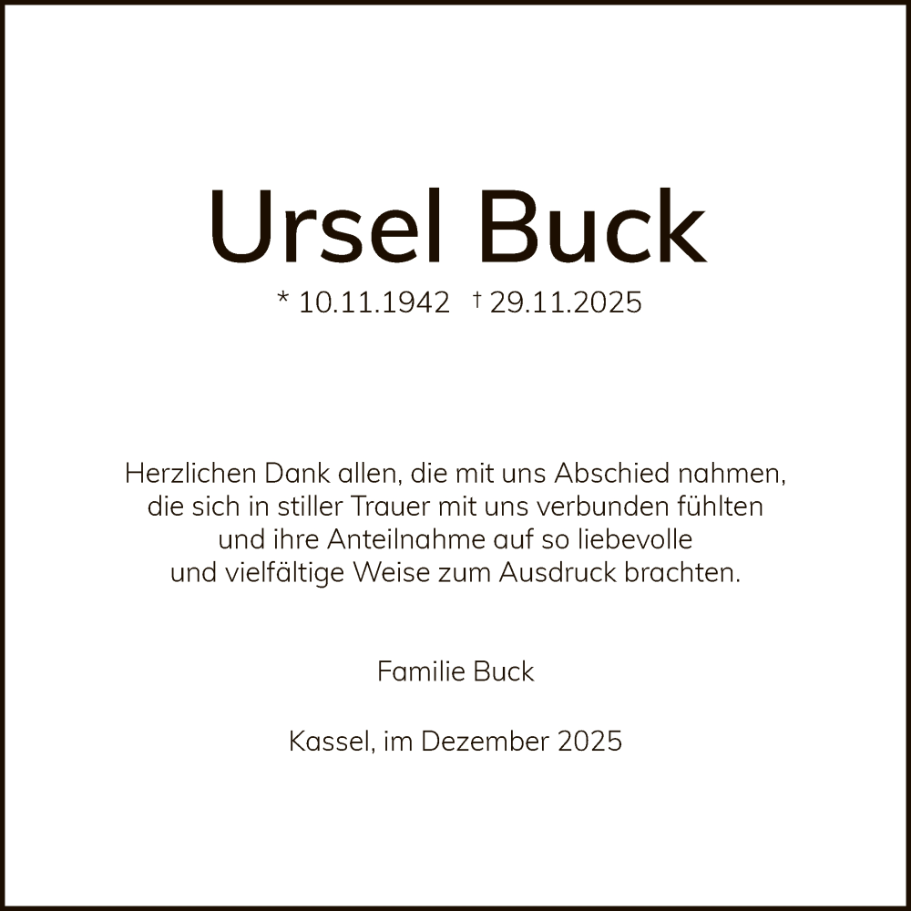 Hier finden Sie alle Traueranzeigen aus der Zeitung, die bisher für Ursel Buck erschienen sind. Weitere Traueranzeigen, die in der Zeitung erscheinen, werden hier ebenfalls aufgelistet