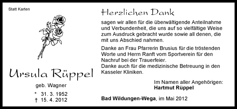 Hier finden Sie alle Traueranzeigen aus der Zeitung, die bisher für Ursula Rüppel erschienen sind. Weitere Traueranzeigen, die in der Zeitung erscheinen, werden hier ebenfalls aufgelistet