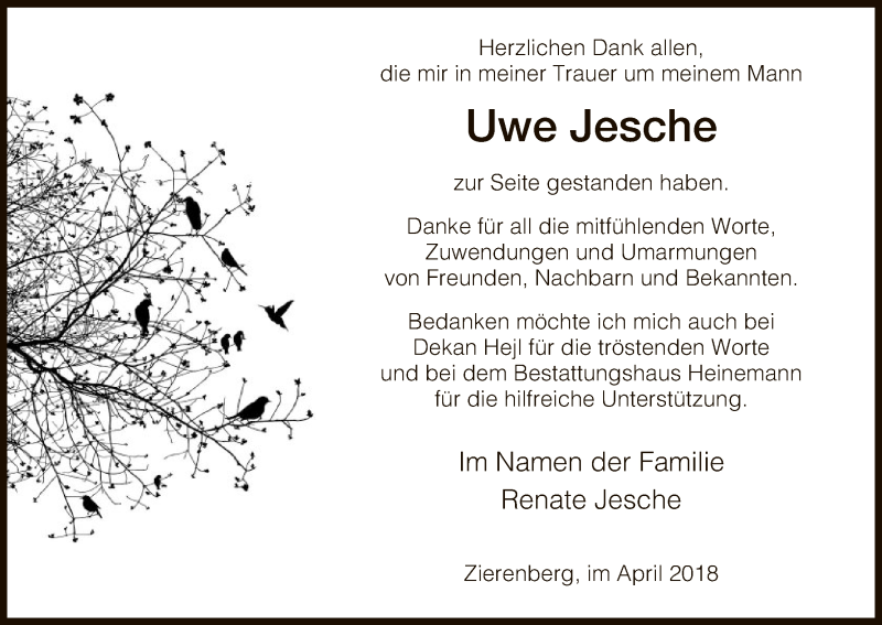 Hier finden Sie alle Traueranzeigen aus der Zeitung, die bisher für Uwe Jesche erschienen sind. Weitere Traueranzeigen, die in der Zeitung erscheinen, werden hier ebenfalls aufgelistet