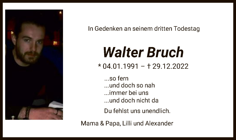 Hier finden Sie alle Traueranzeigen aus der Zeitung, die bisher für Walter Bruch erschienen sind. Weitere Traueranzeigen, die in der Zeitung erscheinen, werden hier ebenfalls aufgelistet