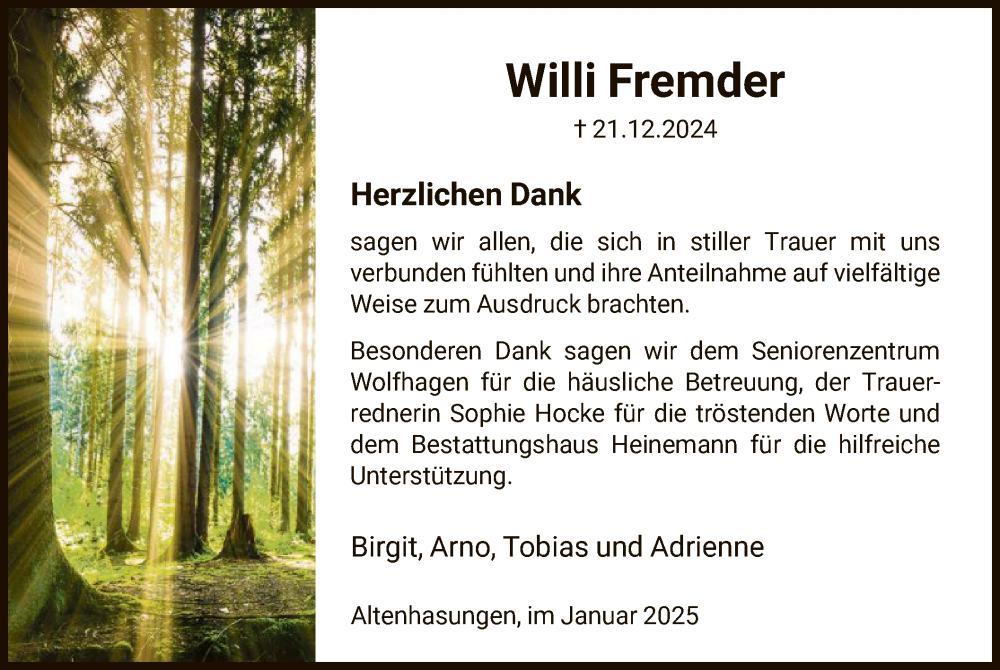 Hier finden Sie alle Traueranzeigen aus der Zeitung, die bisher für Willi Fremder erschienen sind. Weitere Traueranzeigen, die in der Zeitung erscheinen, werden hier ebenfalls aufgelistet