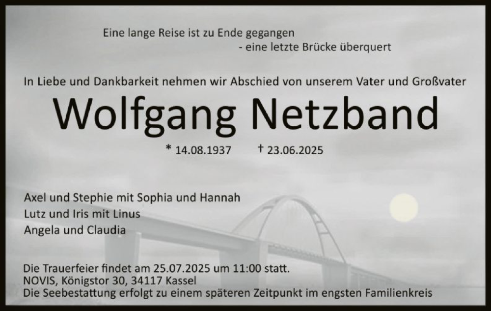 Hier finden Sie alle Traueranzeigen aus der Zeitung, die bisher für Wolfgang Netzband erschienen sind. Weitere Traueranzeigen, die in der Zeitung erscheinen, werden hier ebenfalls aufgelistet