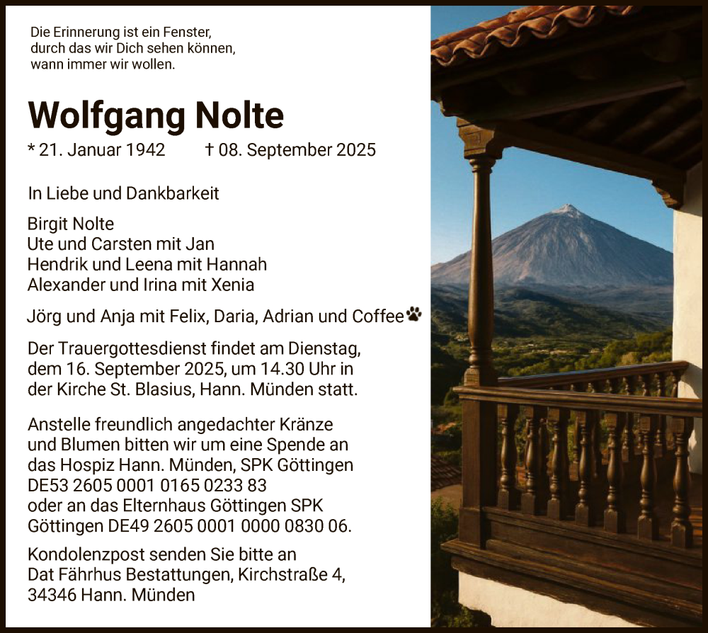 Hier finden Sie alle Traueranzeigen aus der Zeitung, die bisher für Wolfgang Nolte erschienen sind. Weitere Traueranzeigen, die in der Zeitung erscheinen, werden hier ebenfalls aufgelistet