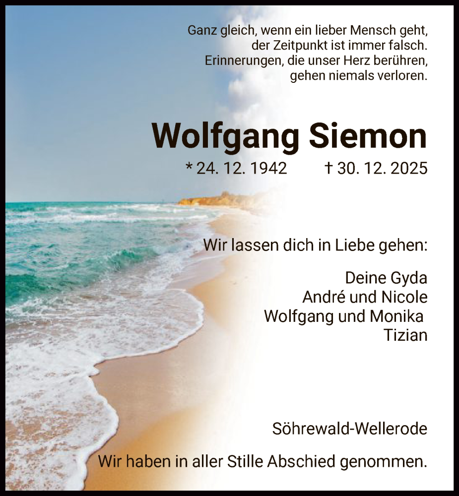 Hier finden Sie alle Traueranzeigen aus der Zeitung, die bisher für Wolfgang Siemon erschienen sind. Weitere Traueranzeigen, die in der Zeitung erscheinen, werden hier ebenfalls aufgelistet